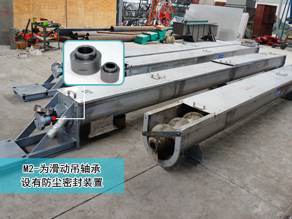1,M1-為滾動吊軸承,采用80000型密封軸承,軸蓋上另有封塵密封結(jié)構(gòu),常用在不易加油,不加油或?qū)ξ锪嫌形廴镜牡胤剑芊庑Ч茫踺S壽命長,輸送物料溫度小于等于80℃。
