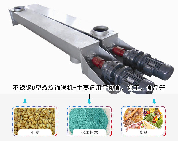 2,不銹鋼U行螺旋輸送機(jī)-主要適用于糧食,化工,食品等對輸送環(huán)境有要求的行業(yè),清潔度高,并且不會對物料產(chǎn)生污染,使用時(shí)間長,但是造價(jià)相對較高。