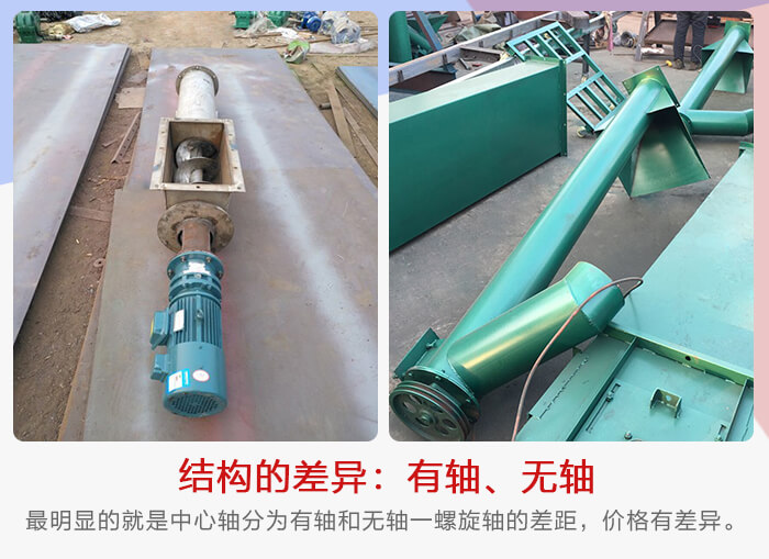 移動(dòng)式螺旋輸送機(jī)在結(jié)構(gòu)特點(diǎn)上其是有所差距的。其中最明顯的就是中心軸分為有軸和無(wú)軸,雖然他們就只有一螺旋軸的差距,但是價(jià)格還是有幾百甚至上千元的差異,具體差異要以型號(hào)差異為主。