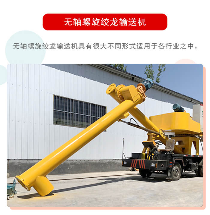 無軸螺旋絞龍輸送機是講物料由進料口輸入,螺旋輸送機機內(nèi),利用電機的動力帶動螺旋軸和螺旋軸上的葉片,進行旋轉(zhuǎn),在旋轉(zhuǎn)的過程中帶動物料,從一頭輸送到另一頭的輸送過程,從而也完成無軸螺旋輸送機的輸送要求。