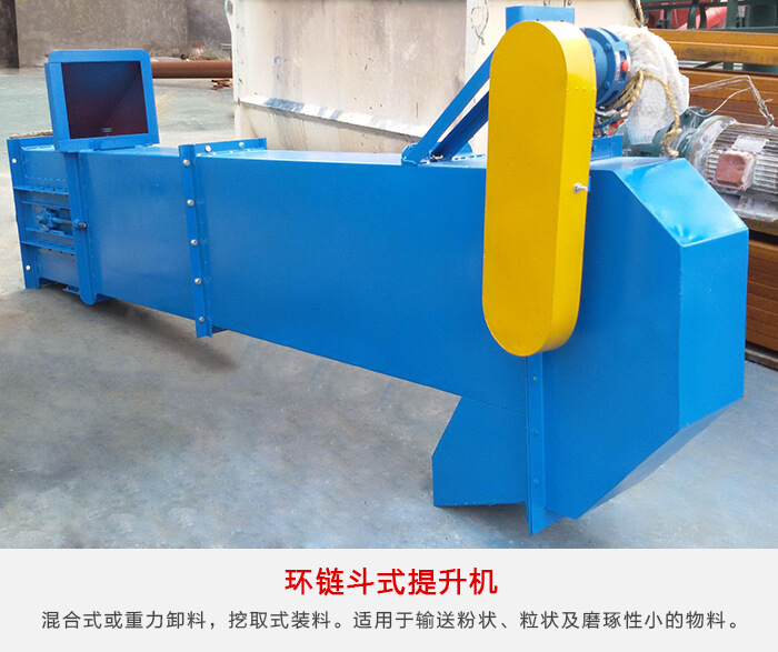 環(huán)鏈斗式提升機(jī)采用混合式或重力卸料,挖取式裝料。牽引件用優(yōu)質(zhì)合金鋼高度圓環(huán)鏈,適用于輸送粉狀、粒狀及小塊狀的無(wú)磨琢及磨琢性小的物料,如煤、水泥、碎石、砂子、化肥、糧食等。