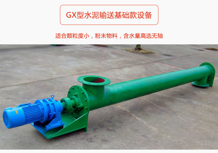 GX型水泥螺旋輸送機是基礎版的設備,適合輸送顆粒度小,粉末物料,若輸送含水量高,粘性水泥物料需選用無軸式水泥螺旋輸送機;具體參數如下: