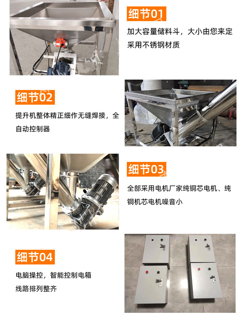 簡介:不銹鋼螺旋輸送機采用(304/316L不銹鋼材質,耐腐蝕、耐高溫、易清洗、不易生銹、不會對輸送原料造成污染
